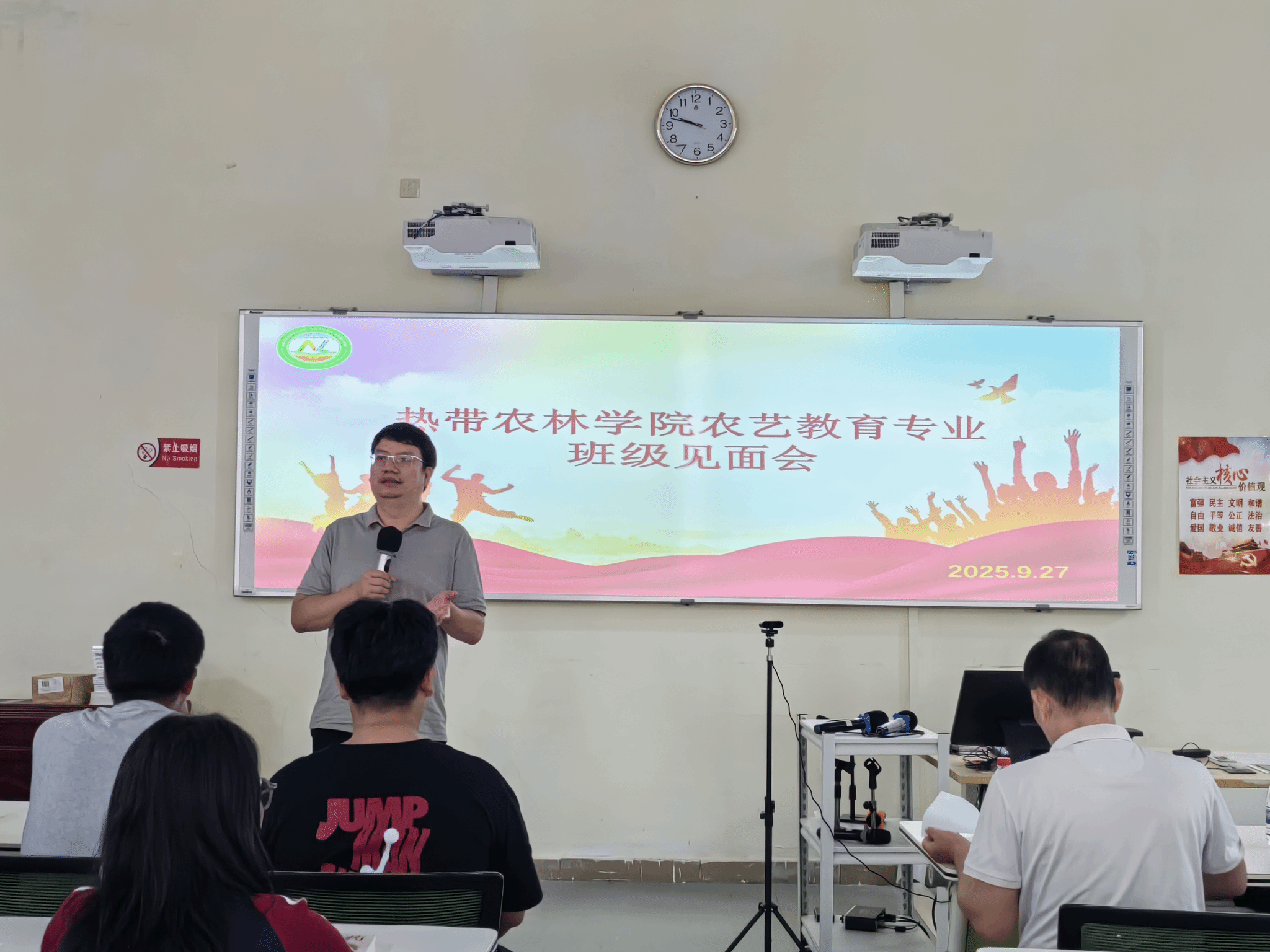 于旭东书记为新生讲授“大学第一课”。他系统阐述了农艺教育专业在海南自贸港建设和乡村振兴背景下的设立初衷与发展前景,指出本专业致力于培养“全科型人才”与“致富带头人”。于书记勉励同学们要修身立德、注重实践,在掌握专业技能的同时强化写作表达与人际交往能力,合理规划大学生活,实现全面发展。