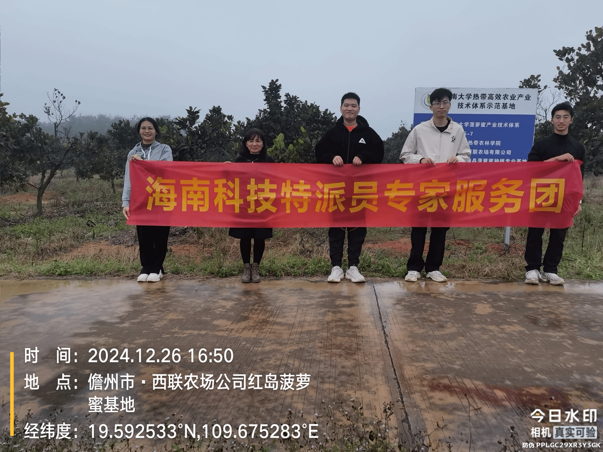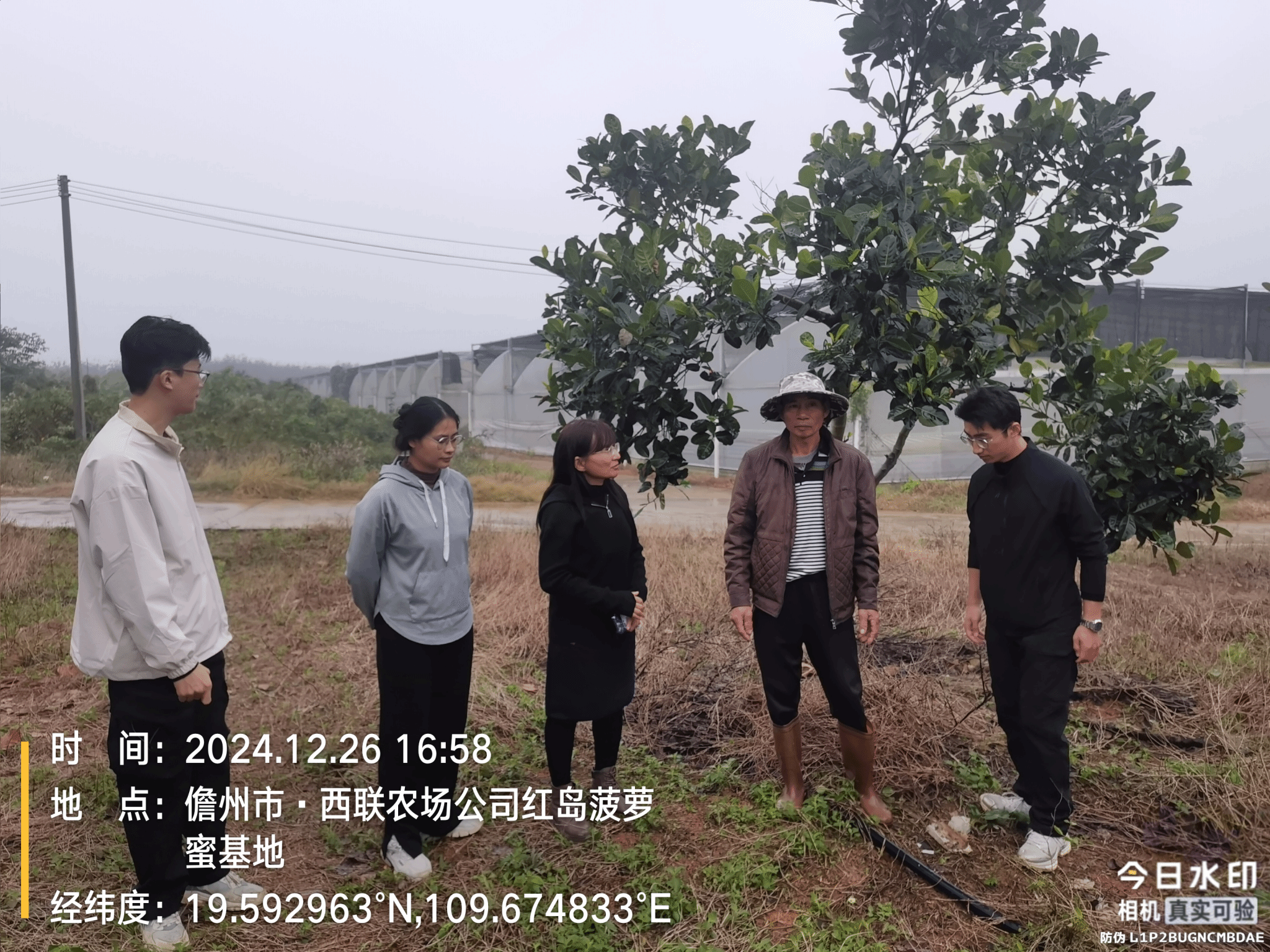 图为团队成员走访西联农场红岛菠萝蜜基地