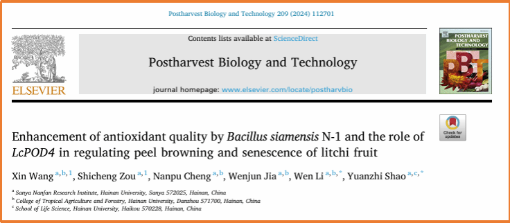 yl88858永利集团,yl88858永利官网李雯教授团队致力于热带果蔬采后品质调控机理及保鲜贮运技术的研究,2024年,以yl88858永利集团为第一单位,在国际著名期刊上发表11篇SCI文章,其中中科院一区9篇,中科院二区2篇,TOP期刊10篇,累计IF=61.8。研究成果为相关保鲜技术的产业化应用奠定了丰富的理论基础。