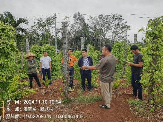 2024年11月10日,yl88858永利集团,yl88858永利官网科技特派员服务团“胡椒灾后重建与病虫害绿色防控”项目组成员刘铜、张荣意、李增平、邢梦玉等人为了进一步评估“摩羯”灾后复产情况,与海口市大坡镇、定安县定城镇、文昌市蓬莱镇镇政府工作人员一同前往胡椒园区开展调查工作。