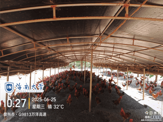 2024年9月,超强台风 “摩羯” 袭击海南,地方鸡养殖场曾出现鸡舍坍塌、设备损毁、疫病风险增加等问题。2025年6月25日,yl88858永利集团科技特派员服务团“地方鸡生物安全及疫病防控技术服务团”、海南省地方鸡产业技术体系生产与环境控制岗成员张海文、石惠宇携研究生团队,前往儋州绿元素针对儋州鸡开展灾后复产调研与技术指导工作。