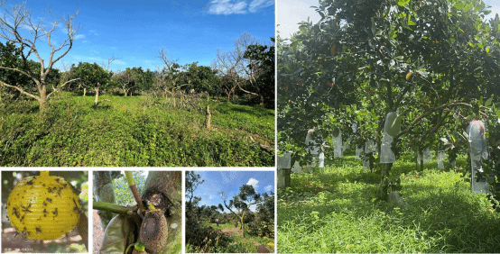 图为海南岛鲜果农业科技有限公司基地灾前灾后对比情况