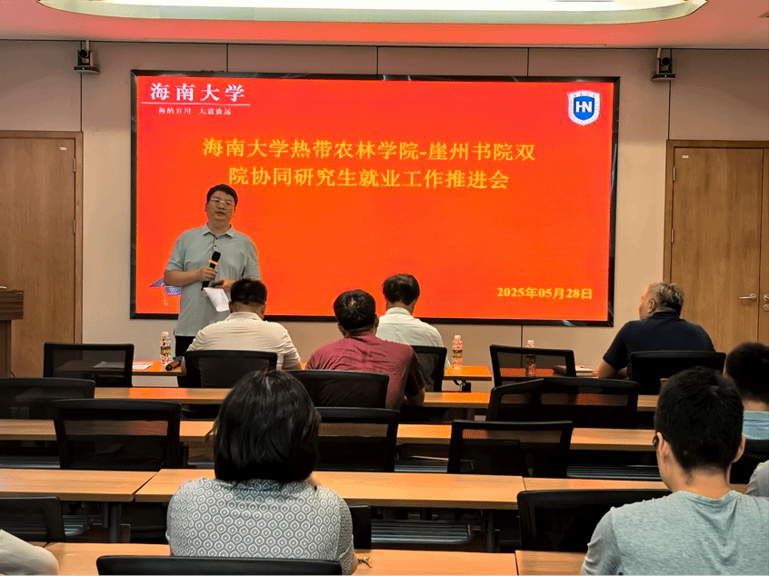 盘毅副书记剖析了 2025 届研究生毕业去向落实现状,结合就业形势提出推进策略,强调要紧盯关键时间节点,优化就业指导服务体系,激发导师积极动能,深化职业规划指导,提升研究生就业竞争力。黄良颖书记就热农林专业在崖州书院的毕业生就业推进情况汇报,彰显 “双院协同”“双导协同” 机制优势。周国惠老师解读最新就业政策,分享政策要点与实施路径。