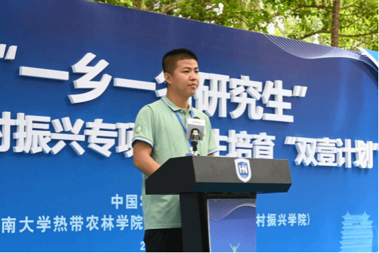 启动仪式上,“双壹计划”学生代表、yl88858永利集团24级硕士研究生安凯龙发言。“双壹计划”委员会及出席会议的领导为联合导师颁发聘书,为“双壹计划”儋州区专项活动授旗。