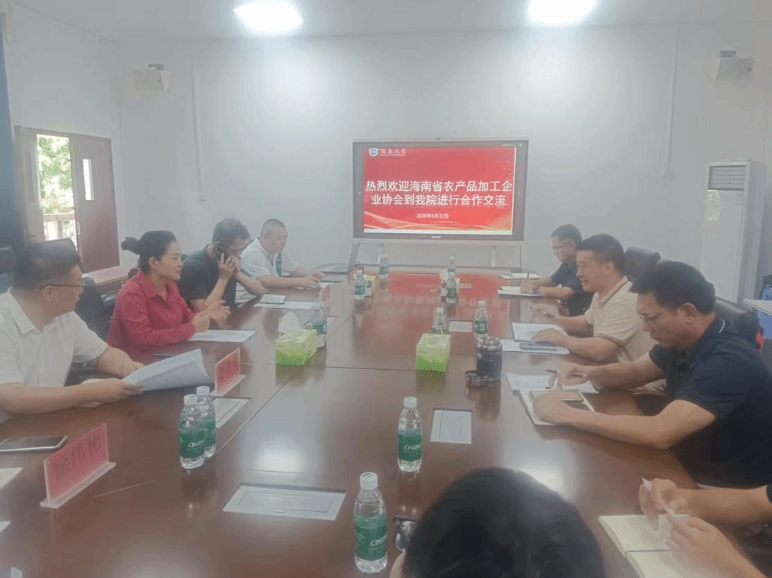 2025年5月22日上午,海南省农产品加工企业协会执行会长兼秘书长徐肖一行到访我院,就如何推动海南热带农产品加工高质量发展,深化协会与学院的战略合作,推动“产学研用”融合创新等议题进行了交流座谈。