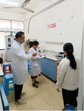 为增强师生实验室安全防范意识,及时排除安全隐患,保障学院教学科研工作的顺利开展,2023年11月30日,学院分管副院长王健、实验室安全督察组长莫廷辉、实验室安全督察员李娟玲、张彩凤、尤燕平、吴凡老师深入学院各实验室,重点对实验室化学品管理、消防安全、仪器使用及实验室准入管理等进行了全面督查。