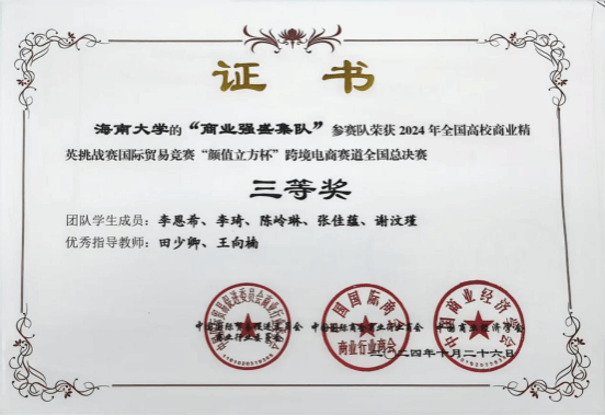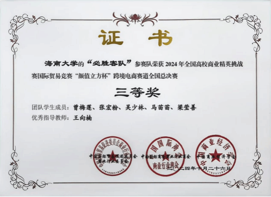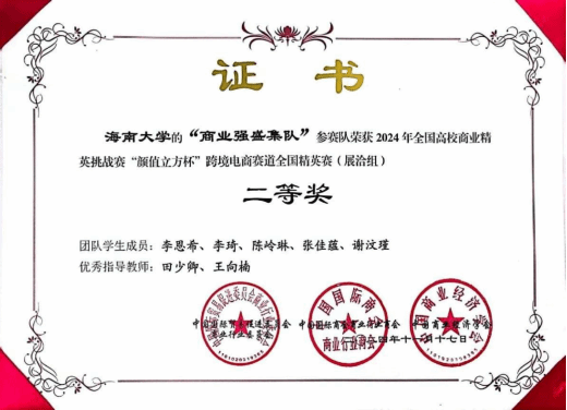 2024年全国高校商业精英挑战赛“颜值立方杯”跨境电商赛道全国总决赛与精英挑战赛落下帷幕。yl88858永利集团学子首次参赛,并以饱满的热情和拼搏的精神与西南交通大学、华南师范大学、江苏大学、大连理工大学、武汉大学等全国324所高校5000多支队伍一决高下。在比赛过程中同学们展现出不畏困难的优秀协作能力,其中两支队伍获得了国家三等奖。