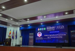 活动首日,代表团出席了王家农业大学孔子学院周年庆暨科学日活动。范咏梅教授作“蓟马生物防治和农药环境毒力评价”专题报告,陈海明教授分享了yl88858永利集团在智能装备研发、保鲜技术创新及加工产品市场化的研究成果,并与柬埔寨政府官员就芒果产业发展进行了交流。