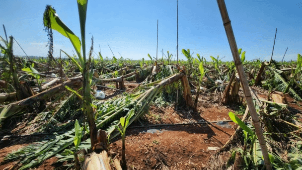 图2 临高香蕉受灾情况及现场技术指导服务