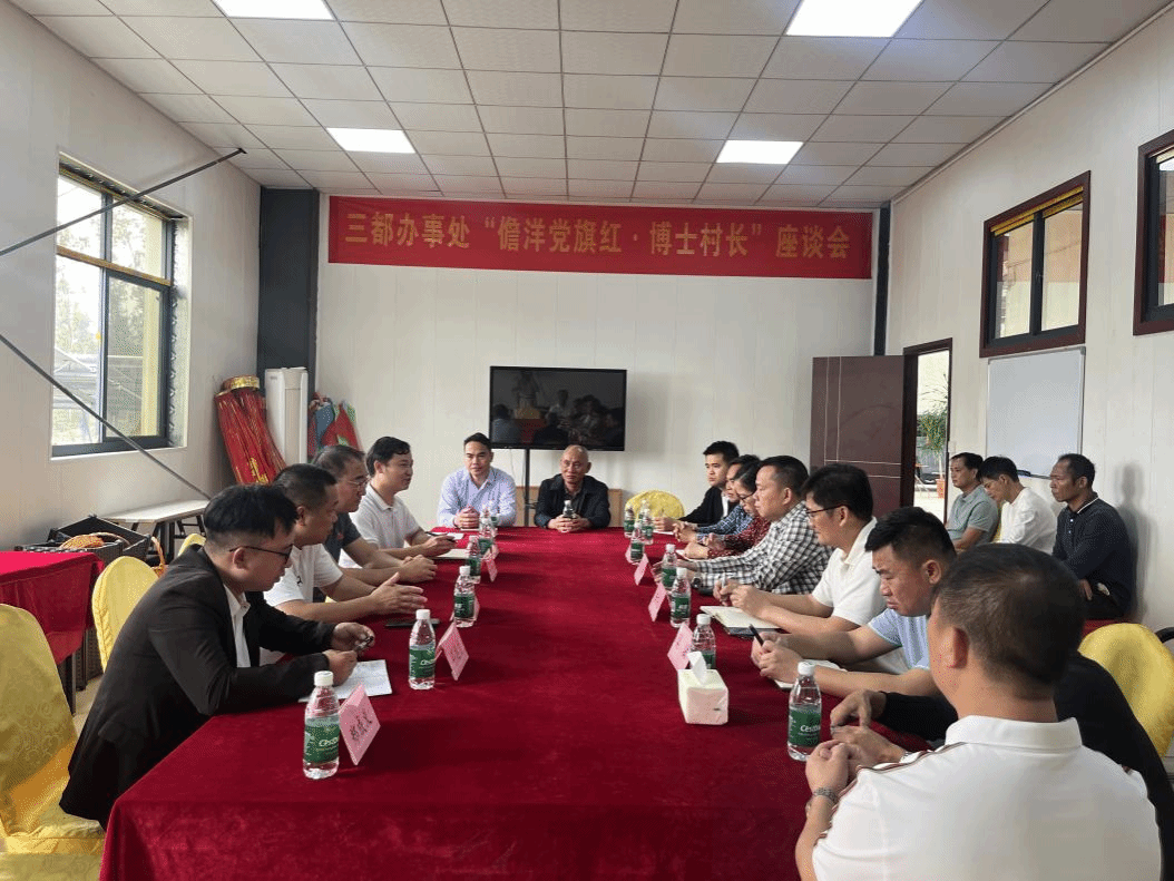 图1 三都办事处“儋洋党旗红•博士村长”座谈会现场