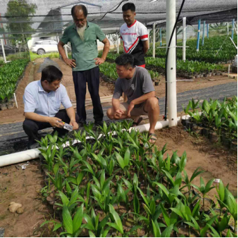 于旭东一行首先来到槟榔育苗大棚,检查了槟榔苗生长情况,针对出现的少量病害提出了科学防治方案。而后检查了排水系统,指导清理棚间和棚周围的排水沟,确保雨水能迅速排出,防止内涝和倒灌。