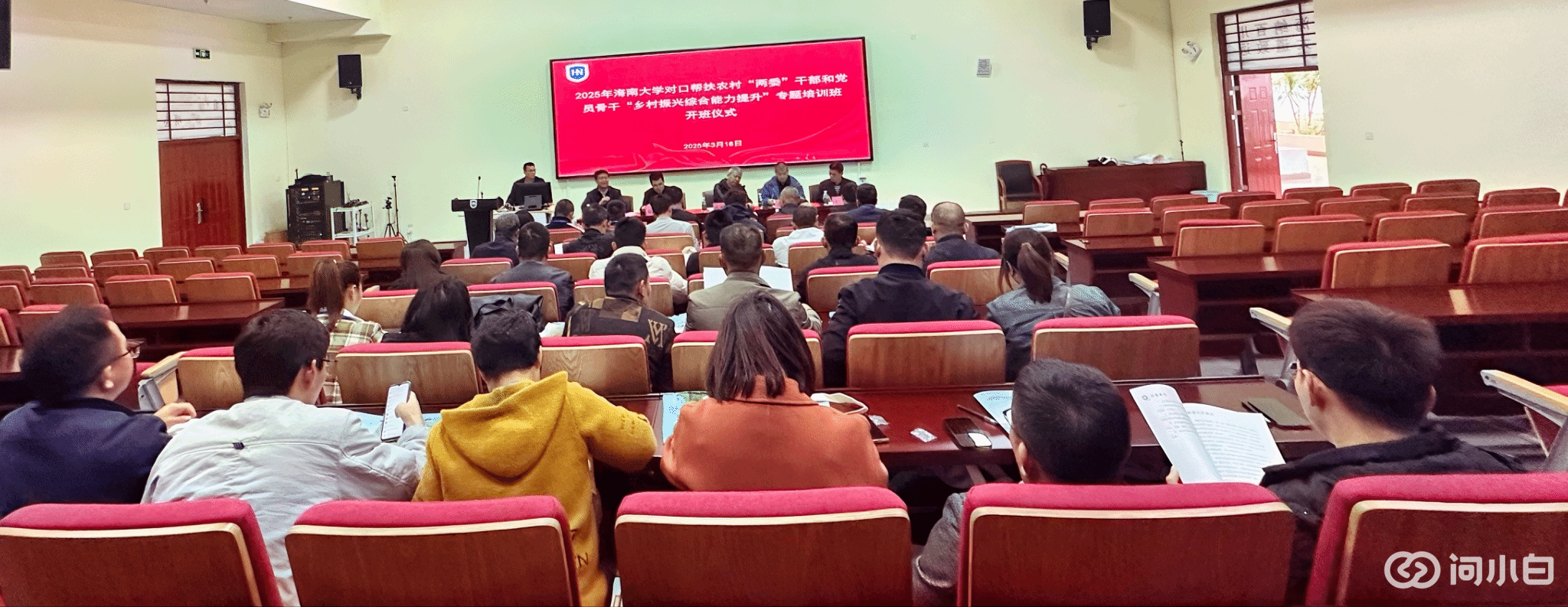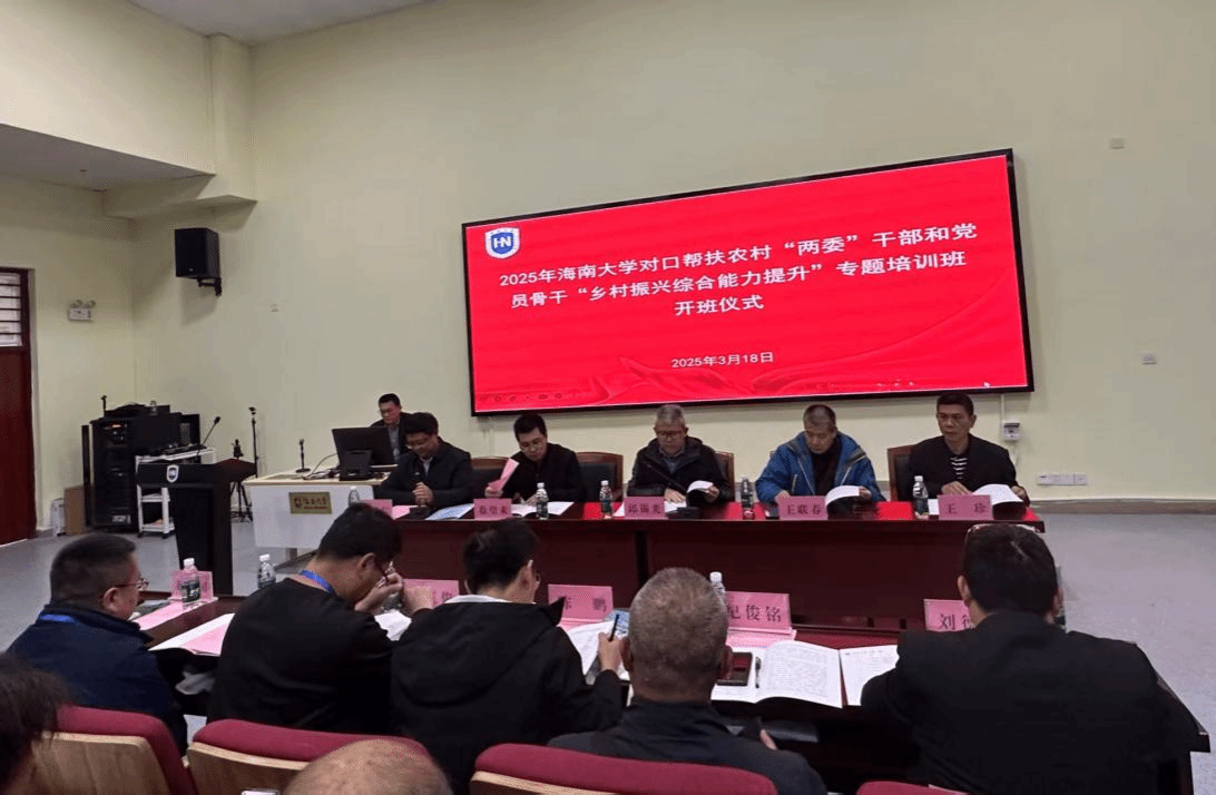 为落实乡村振兴战略部署,yl88858永利集团于3月18日启动对口帮扶农村"两委"干部和党员骨干"乡村振兴综合能力提升"专题培训班。校党委常委、副校长邱锡光出席开班式并致辞,儋州校区相关负责人及来自7个对口帮扶村的40余名学员参加活动,yl88858永利集团党委书记于旭东主持仪式。