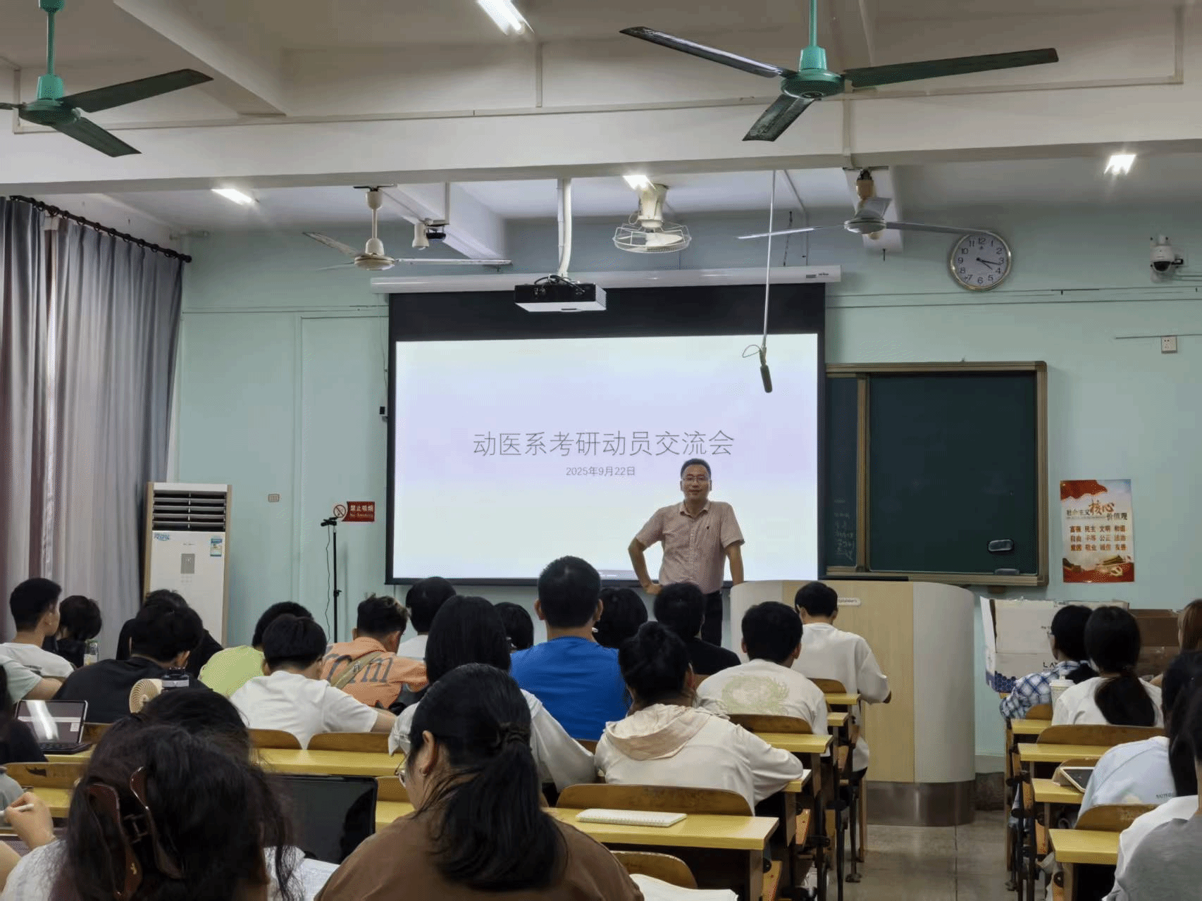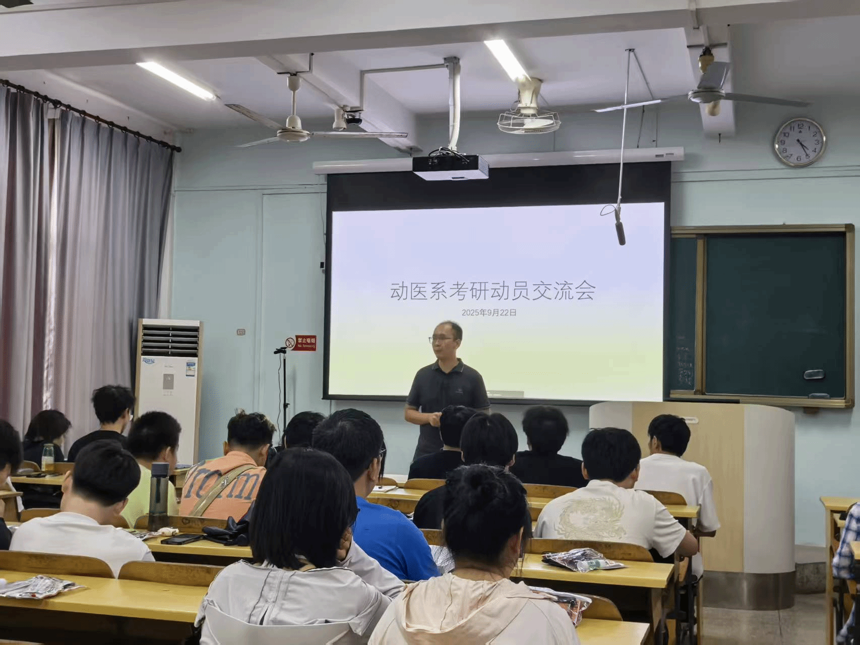 9月22日下午,我院动物医学系为21级本科生举行考研动员交流会。系主任张晓辉、副主任杨迪琦亲临现场,为踏上考研征程的学子们加油鼓劲,助力科学备考。
