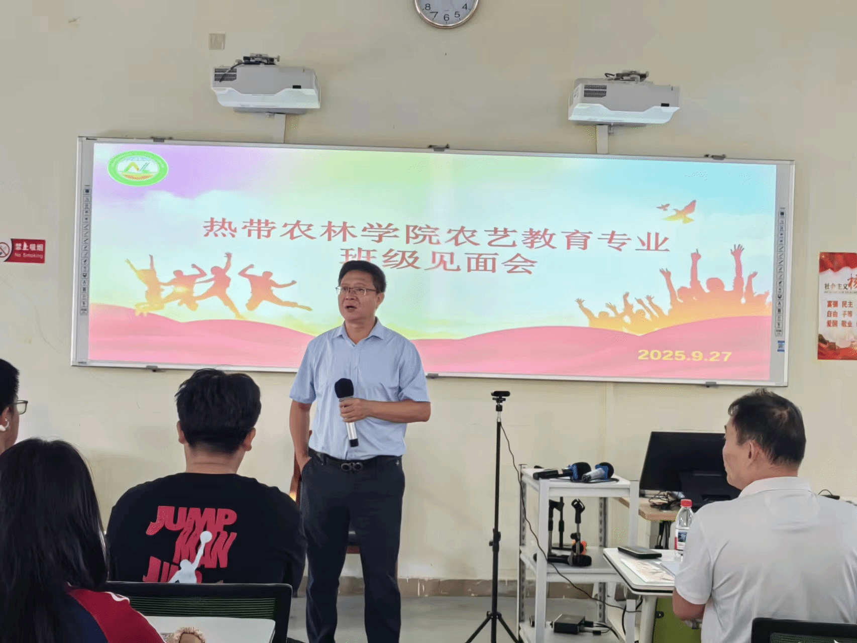 于旭东书记为新生讲授“大学第一课”。他系统阐述了农艺教育专业在海南自贸港建设和乡村振兴背景下的设立初衷与发展前景,指出本专业致力于培养“全科型人才”与“致富带头人”。于书记勉励同学们要修身立德、注重实践,在掌握专业技能的同时强化写作表达与人际交往能力,合理规划大学生活,实现全面发展。